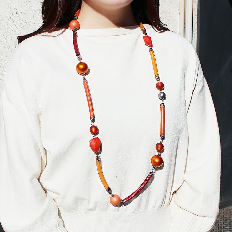 マグネットクラスプ仕様で着脱が簡単なロングネックレス。
