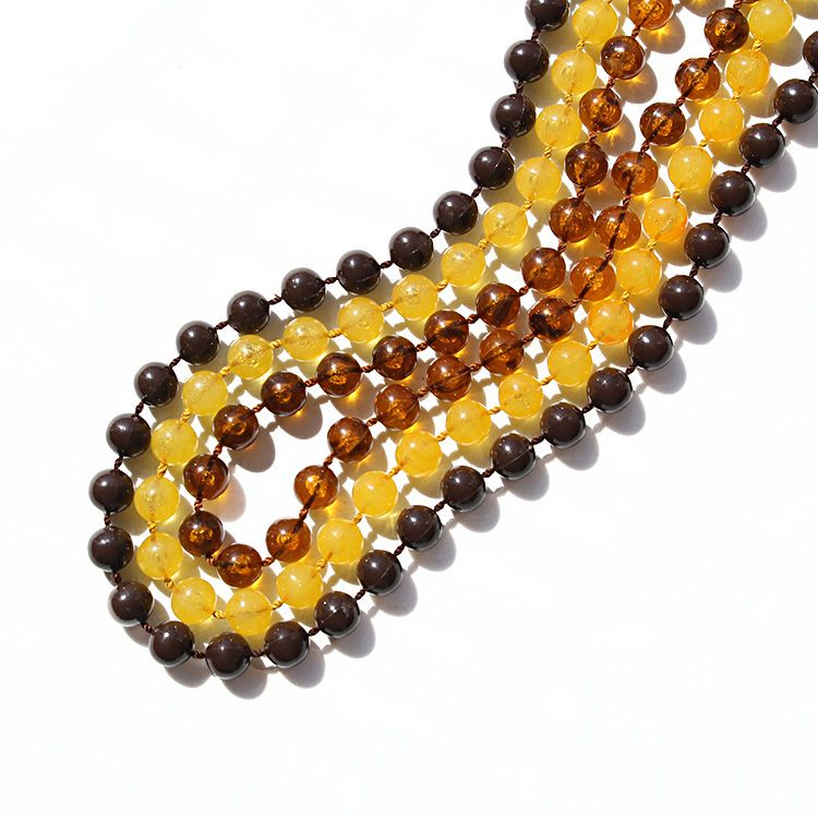 ブラウン、キャメル、イエロー3色のビンテージビーズを組み合わせた3連のネックレス。コーディネートに合わせるだけで秋らしさをUPさせること間違いなし。エレガントにもカジュアルにも最適です。