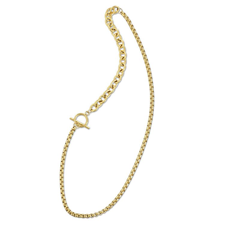 2種類のチェーンを組み合わせたトレンド感あふれるステンレス製のアシンメトリーネックレス。