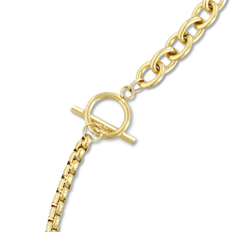 トグルバーがアクセントになり、短くチョーカー風に着用するなどアレンジを楽しむことができる一品です。