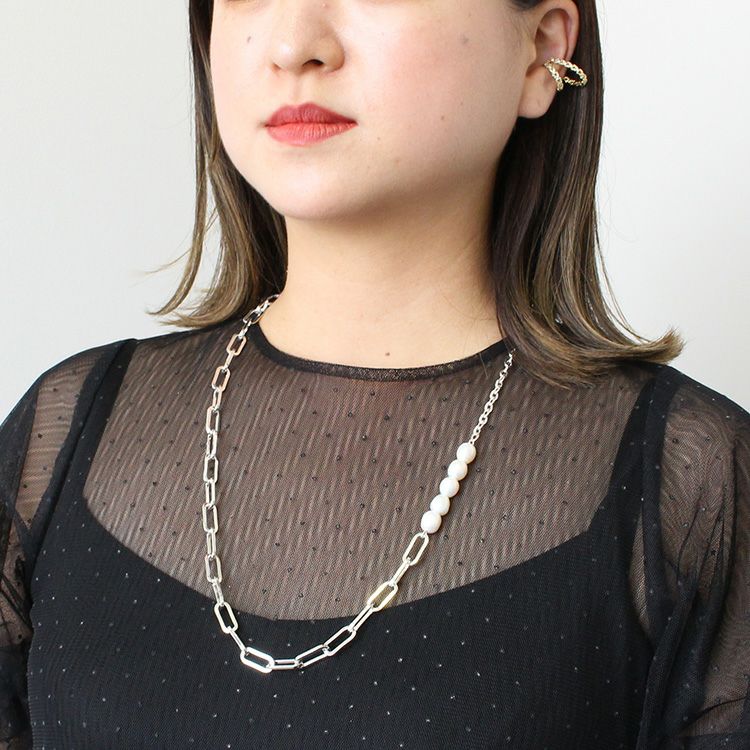パールメタルチェーンネックレス