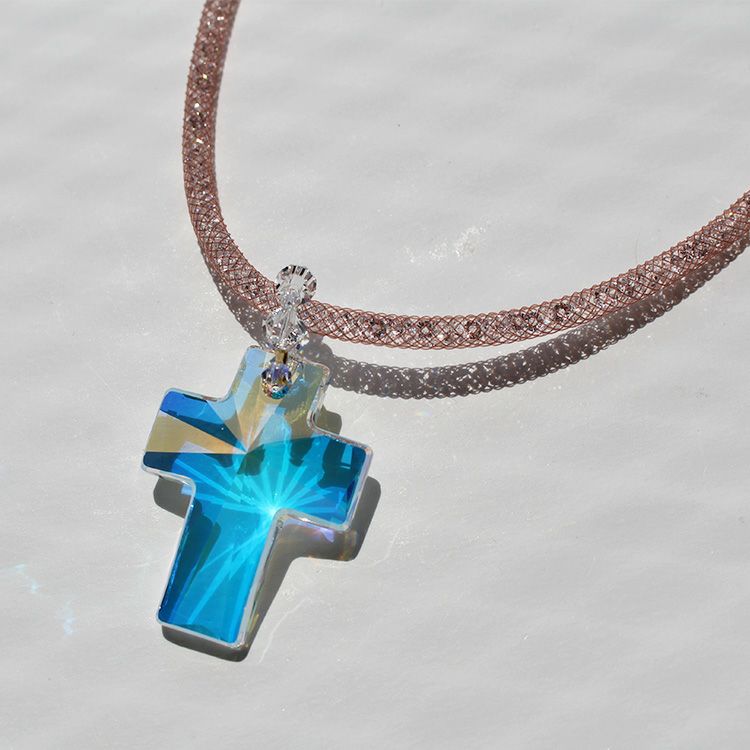 ナイロンメッシュコードクリスタルネックレス/1231011-