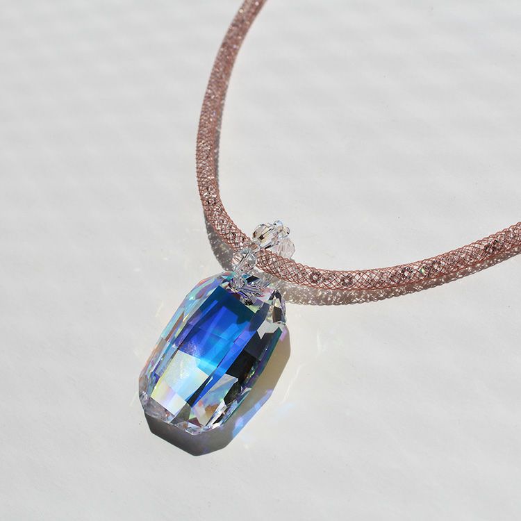オーストリアの老舗、世界最高峰のクリスタルガラスブランドが製造した大粒のクリスタルガラスが煌めくネックレス。ナイロンメッシュの中に約1,000粒もの小さなクリスタルガラスが入ったコードを使用し、大粒、小粒、それぞれの輝きの美しさをお楽しみいただけます。