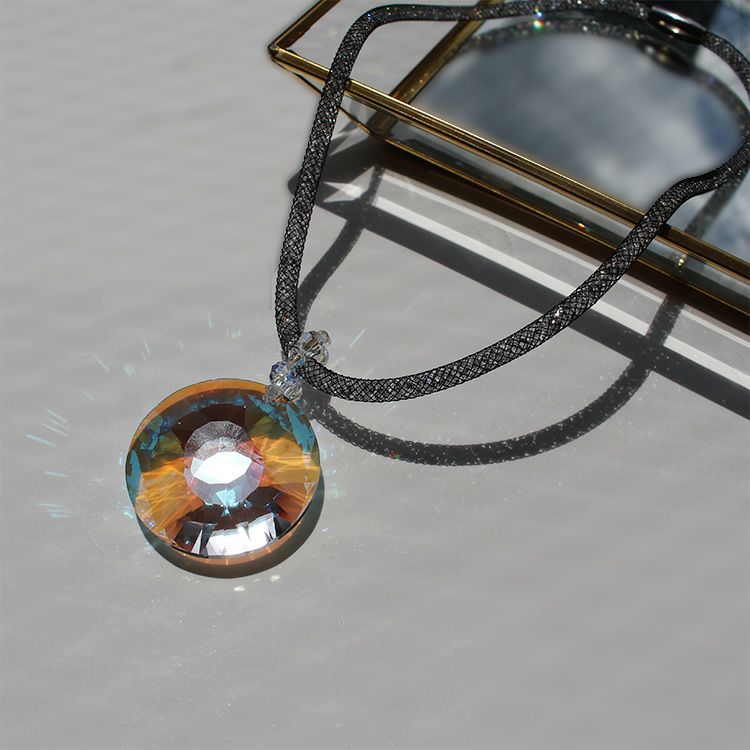 オーストリアの老舗、世界最高峰のクリスタルガラスブランドが製造した大粒のクリスタルガラスが煌めくネックレス。ナイロンメッシュの中に約1,000粒もの小さなクリスタルガラスが入ったコードを使用し、大粒、小粒、それぞれの輝きの美しさをお楽しみいただけます。