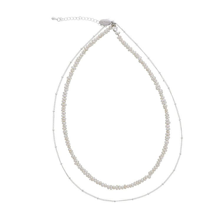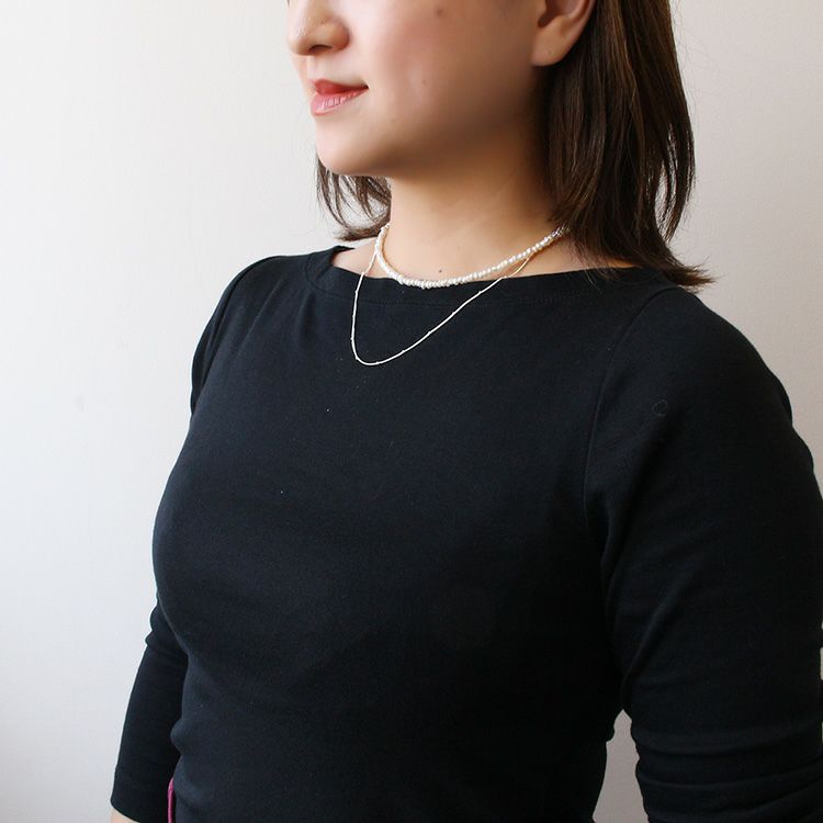 華奢なチェーンと小さな淡水パールの2連ネックレス。チェーンと淡水パールはそれぞれ使用することができるほか、他のアイテムとの組み合わせもお楽しみいただけます。