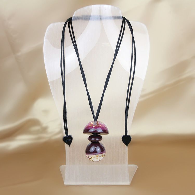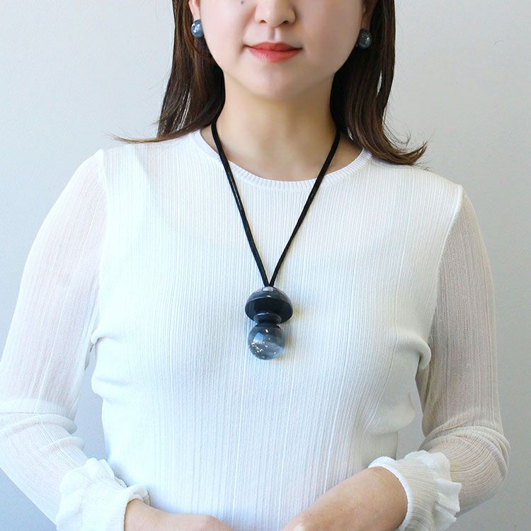 上質な樹脂、ポリエステルレジンの特性を活かし、ガラスのような質感を再現しつつも、軽くてつけやすいことで人気を博しています。肌に触れる部分に金属を使用していないため、アレルギーの方でも安心してお使いいただけます。