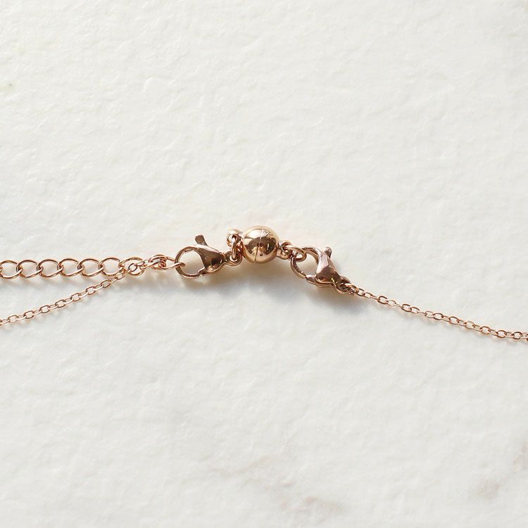 マグネット式の留め具が付属でついており、ネックレスの着脱をスムーズにしてくれます。ネックレス本体についているカニカンにつなげご使用ください。