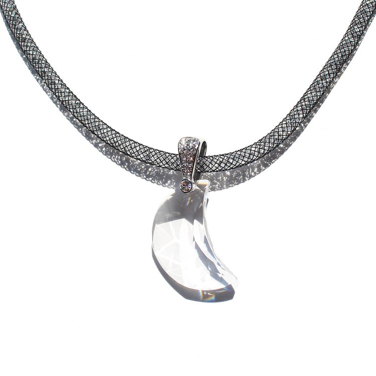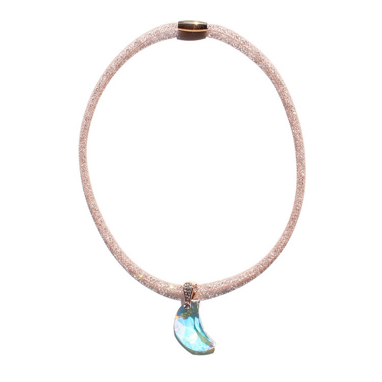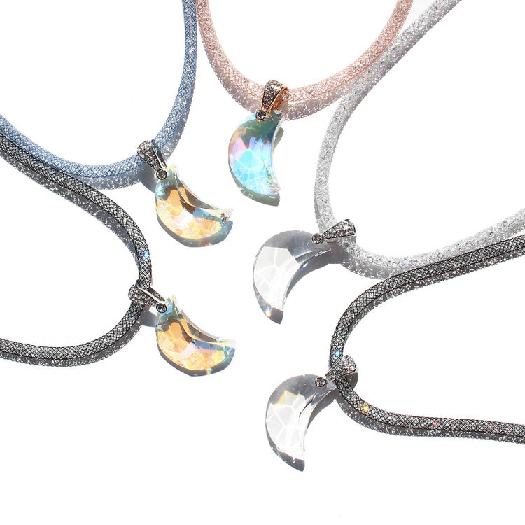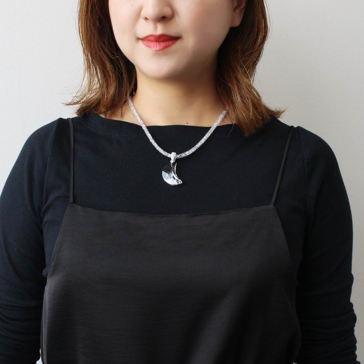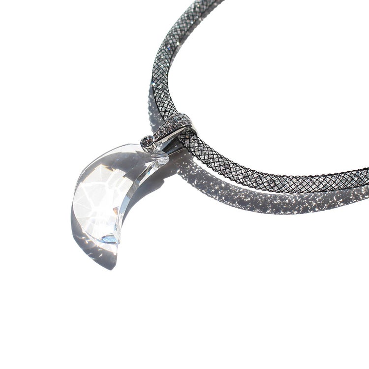 オーストリアの老舗、世界最高峰のクリスタルガラスブランドが製造した大粒のクリスタルガラスが煌めくネックレス。ナイロンメッシュの中に約1,000粒もの小さなクリスタルガラスが入ったコードを使用し、大粒、小粒、それぞれの輝きの美しさをお楽しみいただけます。