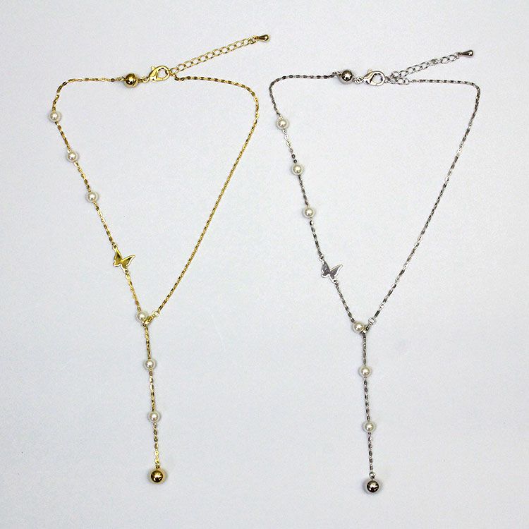 バタフライモチーフ×パールY字ショートネックレス/1240207