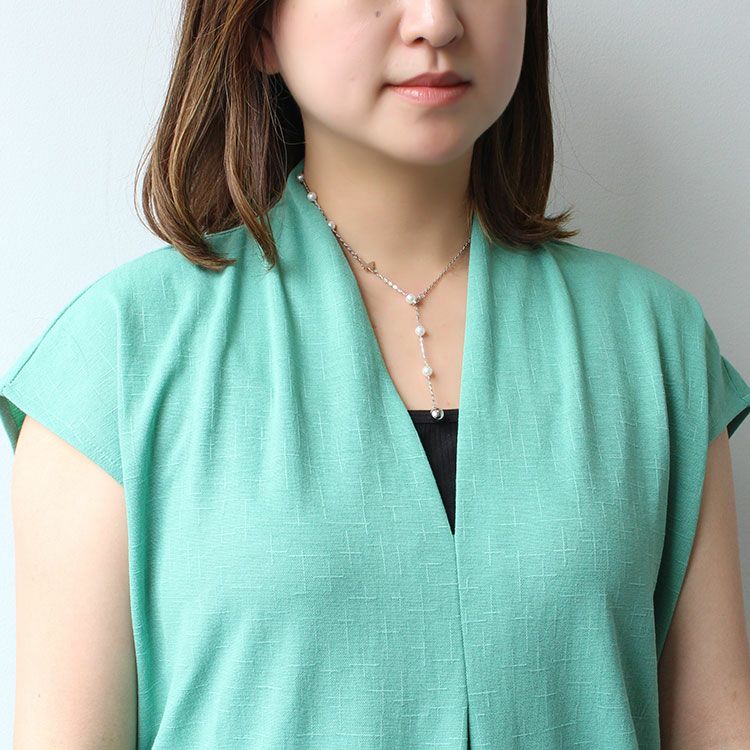 チェーンにパールと蝶々をあしらったY字ショートネックレス。つけるだけでエレガントな印象に仕上げてくれます。普段使いはもちろんパーティーシーンにもご使用いただけます。Y字部分はお好みに合わせてカニカンで長さを調節していただけます。