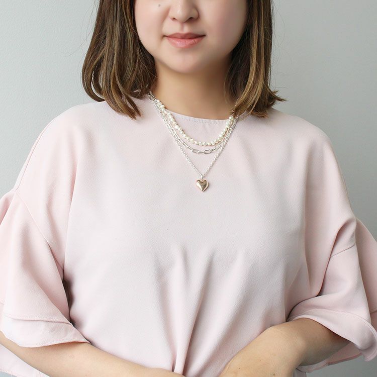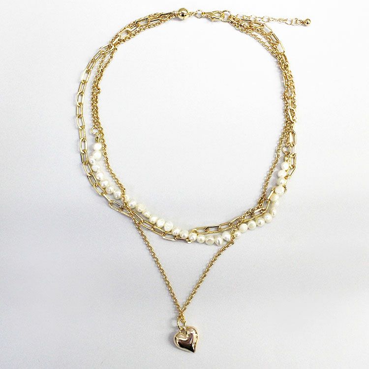 淡水パール×チェーン×ハートペンダント3連ショートネックレス/1240209