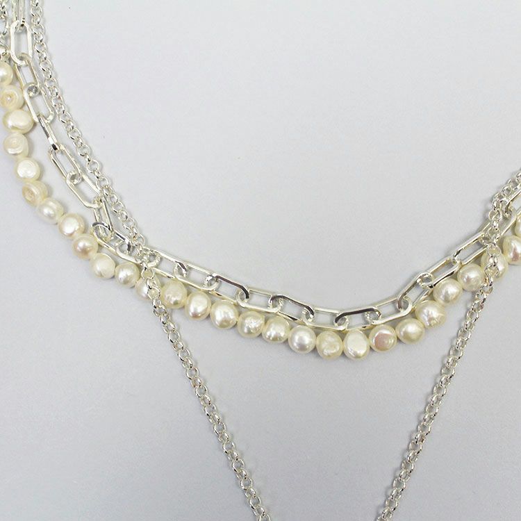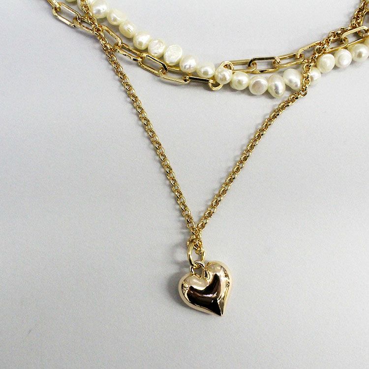 淡水パール×チェーン×ハートペンダント3連ショートネックレス/1240209