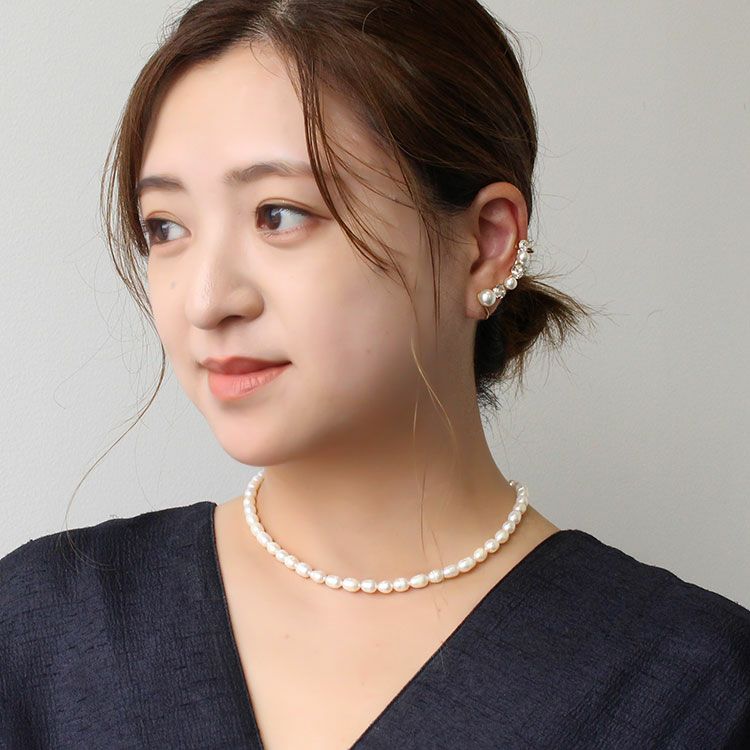 オーバル形の淡水パールショートネックレスはパーティシーンはもちろん、デイリー使いにもご利用いただける優れもの。留め具がハートになっているので、あえて留め具を前にして2Wayでもご利用いただけます。約42cmという使いやすい長さや、マグネット式の留め具のため着脱がスムーズです。