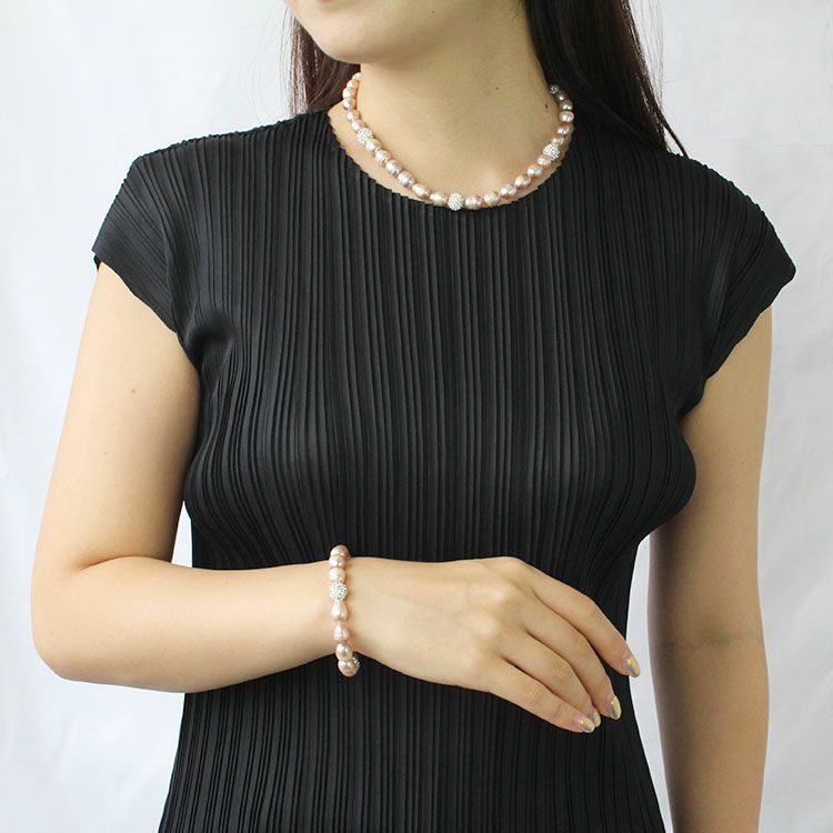 淡水パールネックレス・ブレスレット2点セット/1240297--2