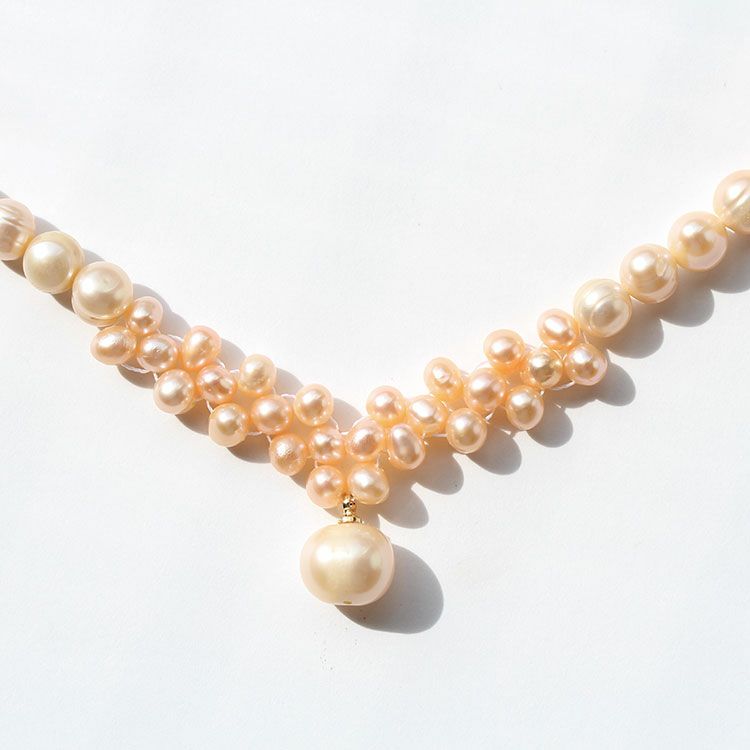 優しい色合いのサーモンピンクよりのライトピンクの淡水パールネックレス。一粒一粒表情の異なる淡水パールは、唯一無二の存在。カジュアルからフォーマルまでさまざまなシーンでお使いいただけます。