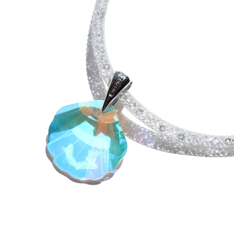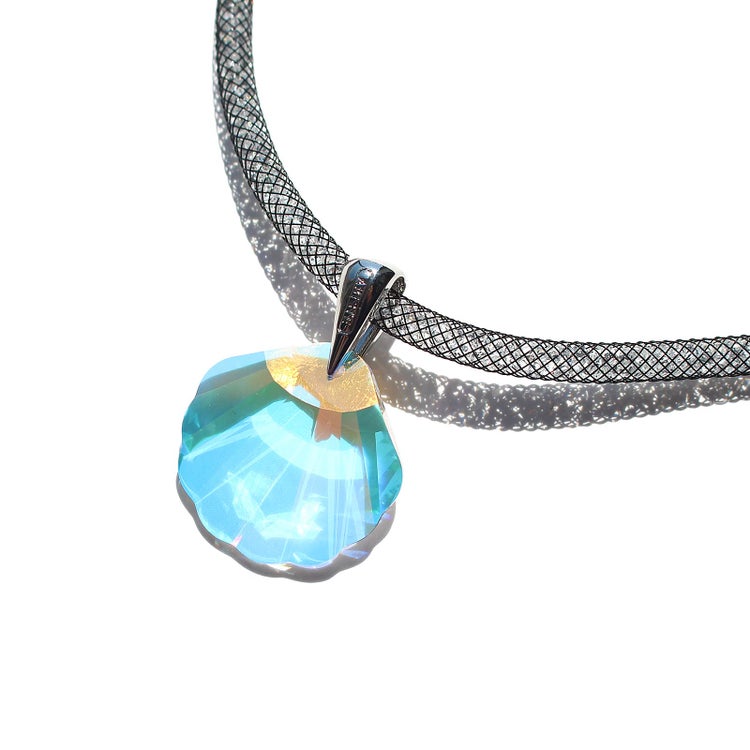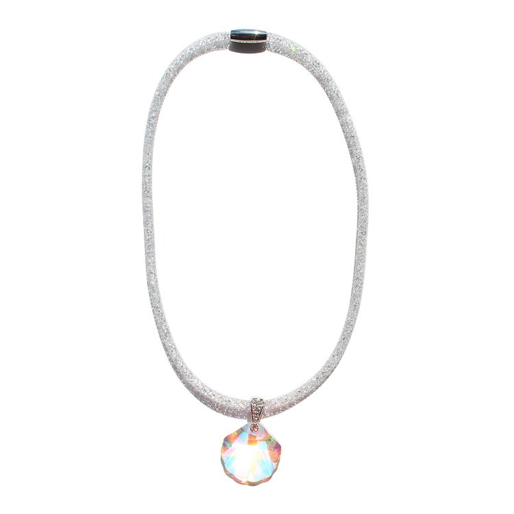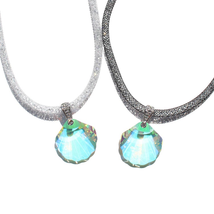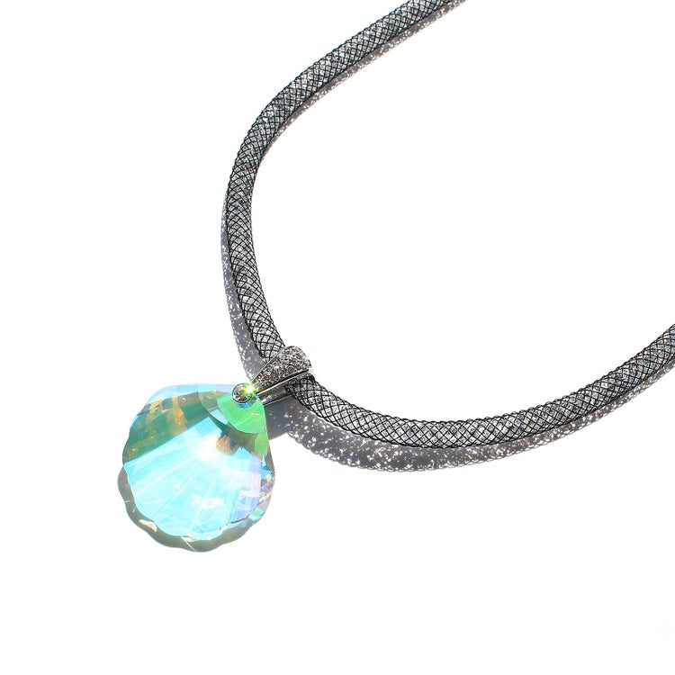 オーストリアの老舗、世界最高峰のクリスタルガラスブランドが製造した大粒のクリスタルガラスが煌めくネックレス。ナイロンメッシュの中に約1,000粒もの小さなクリスタルガラスが入ったコードを使用し、大粒、小粒、それぞれの輝きの美しさをお楽しみいただけます。
