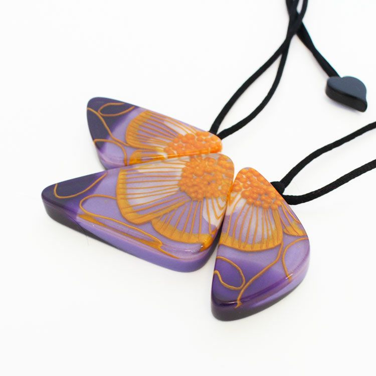 上質な樹脂、ポリエステルレジンの特性を活かし、ガラスのような質感を再現しつつも、軽くてつけやすいことで人気を博しています。肌に触れる部分に金属を使用していないため、アレルギーの方でも安心してお使いいただけます。