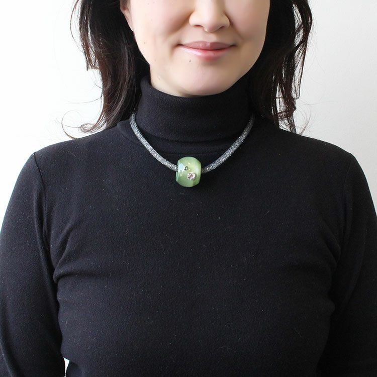 素材玉:レジン、クリスタルガラス コード:6mm、クリスタルガラス、ナイロンメッシュ(PVC)、ステンレススチール(クラスプ)