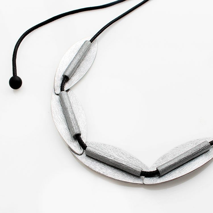 リーフ型のアルミニウムパーツを組み合わせたおしゃれなネックレス。リーフモチーフの表面には加工を施しているので光過ぎず、落ち着いた輝きを放っています。長さ調節が可能なフリーレングスタイプのため着脱もスムーズ。カジュアルからパーティーシーンまで、幅広くご利用いただけます。