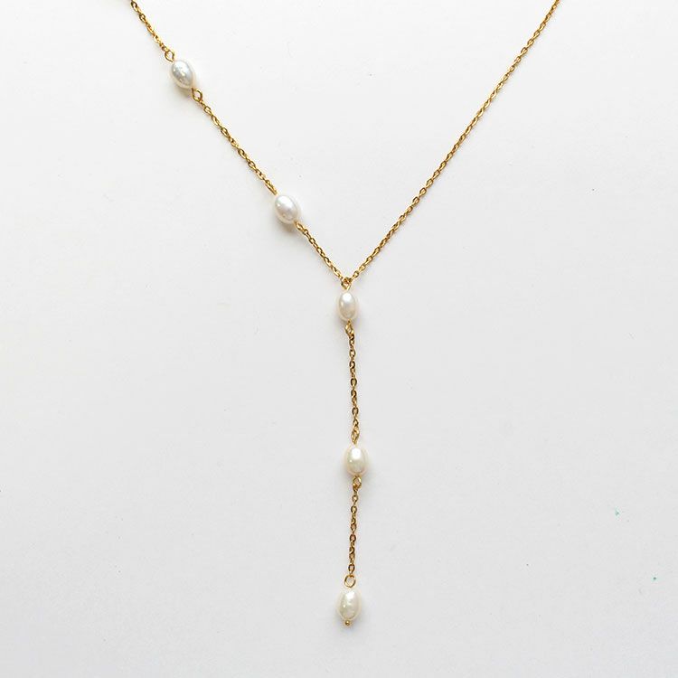 やわらかくなめらかな輝きを放つ淡水パールショートネックレス。スッキリ見えするY字ラインにアシンメトリーなデザインが魅力です。カジュアルはもちろん、オフィス使い、フォーマルまでさまざまなシーンでお使いいただけます。