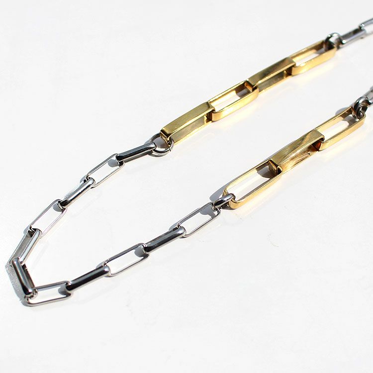 シルバーパーツにゴールドパーツがアクセントになったメタルチェーンロングネックレス。洗練されたスタイリッシュなデザインは、女子会やお買い物はもちろん、オフィス使いやオケージョンシーン、パーティーシーンにもおすすめです。