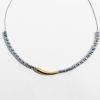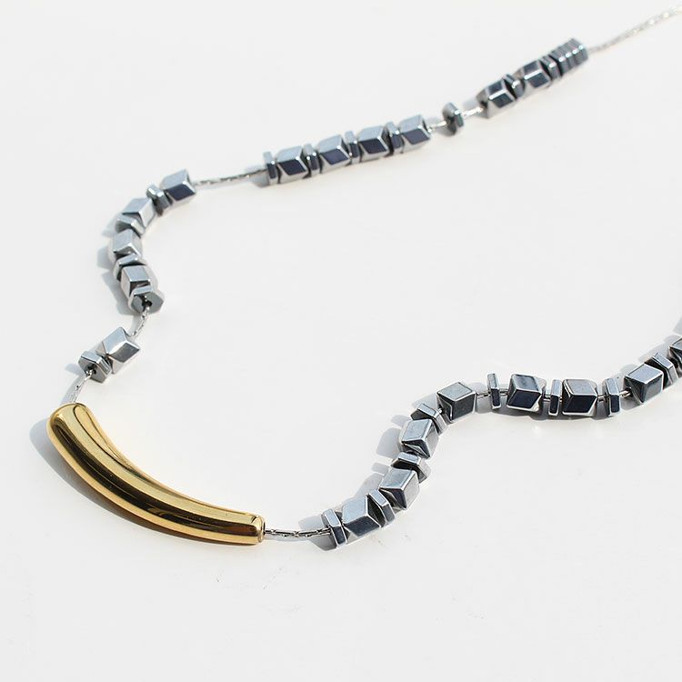 メタルビーズの中央に配置されたメタルバーがおしゃれなショートネックレス。洗練されたスタイリッシュなデザインは、女子会やお買い物はもちろん、オフィス使いやオケージョンシーン、パーティーシーンにもおすすめです。
