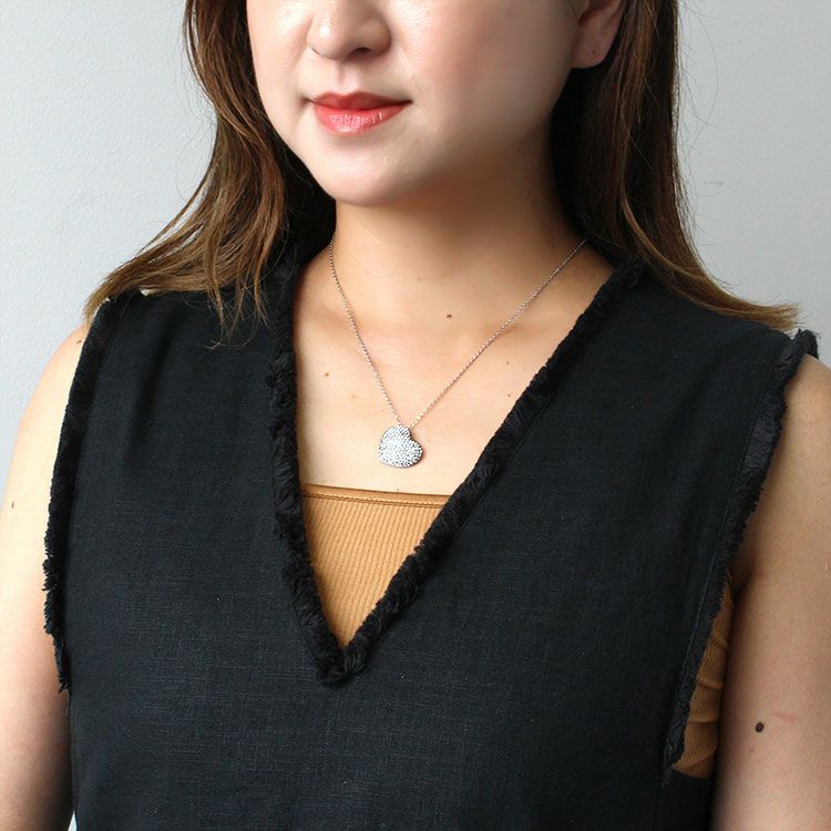 少し斜めに傾いたハートモチーフが大人っぽいペンダントネックレス。チェコクリスタルの煌きが華やかでこなれ感を演出。デイリーはもちろん、セレモニーやオケージョン、オフィス使いにもご使用いただけます。 留め具はマグネット式のため着脱がスムーズ。