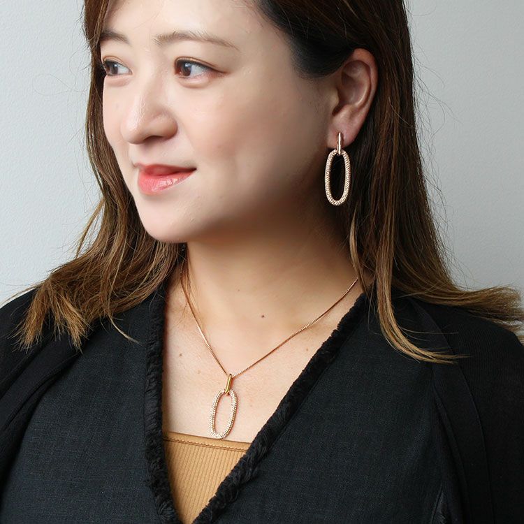 大人っぽいオーバルモチーフペンダントネックレス。チェコクリスタルの煌きが華やかでこなれ感を演出。デイリーはもちろん、セレモニーやオケージョン、オフィス使いにもご使用いただけます。 留め具はマグネット式のため着脱がスムーズ。