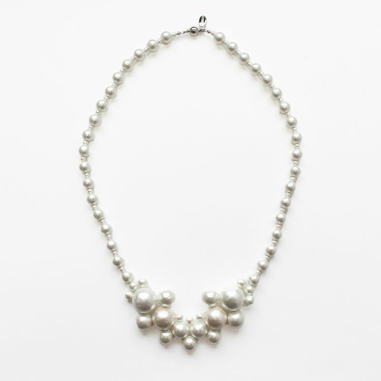やさしげな肌触りと独特の風合いが魅力の、コットンパールのデザインネックレス。