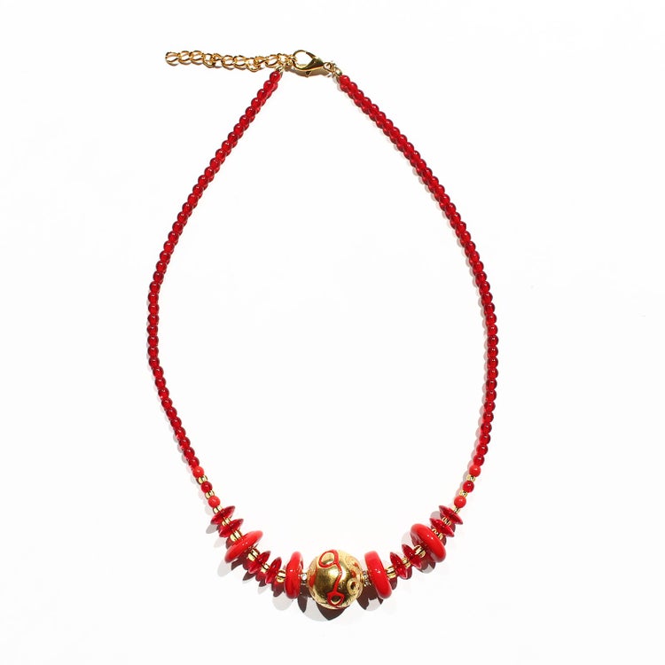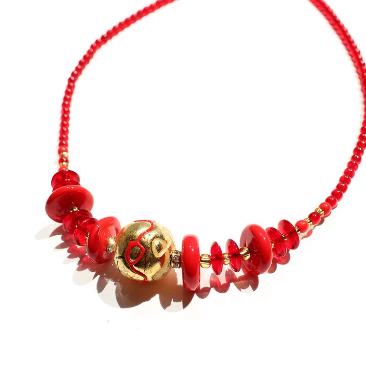 イタリア製ベネチアンガラス金箔入り丸玉ネックレス