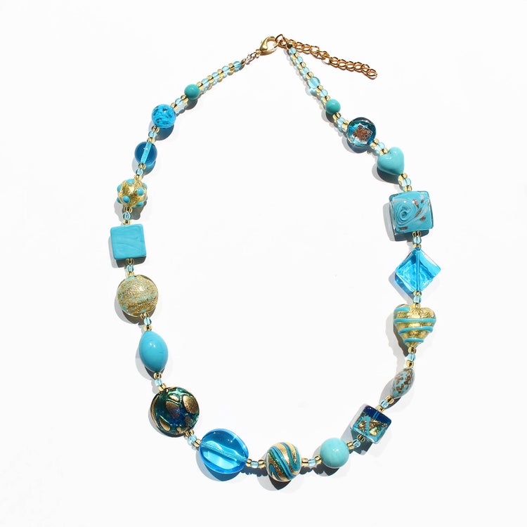 イタリア製ベネチアンガラスターコイズブルーアソートネックレス