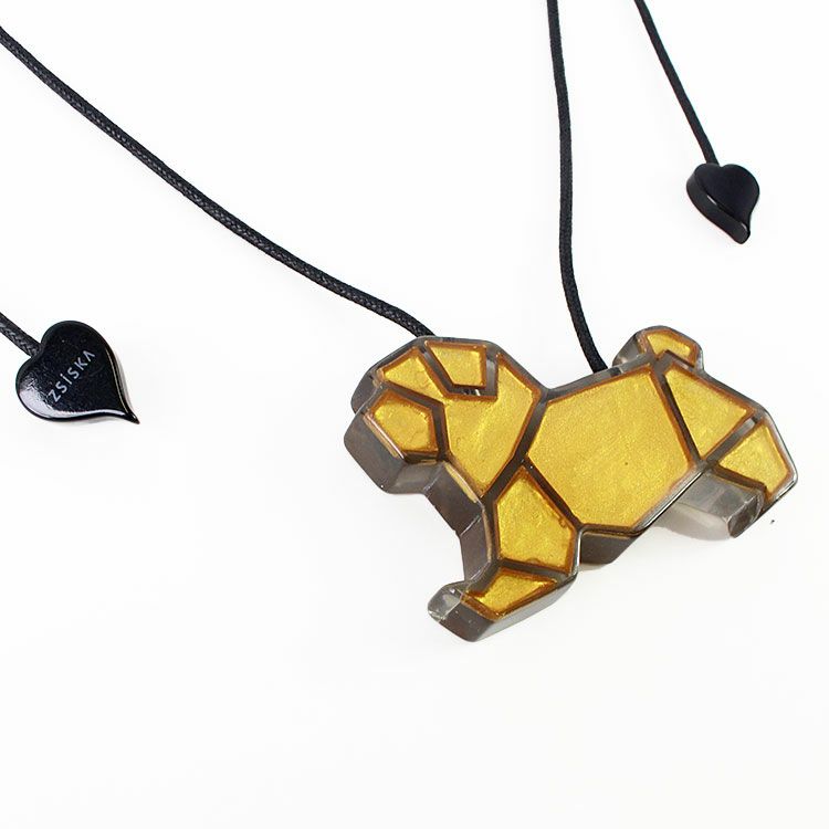 折り紙の芸術からインスピレーションを得た、遊び心のある半透明の動物型ペンダント。メタリック顔料で手描きされています。繊細な光の反射と遊び心で、繊細なステンドグラスのような芸術作品へと昇華します。