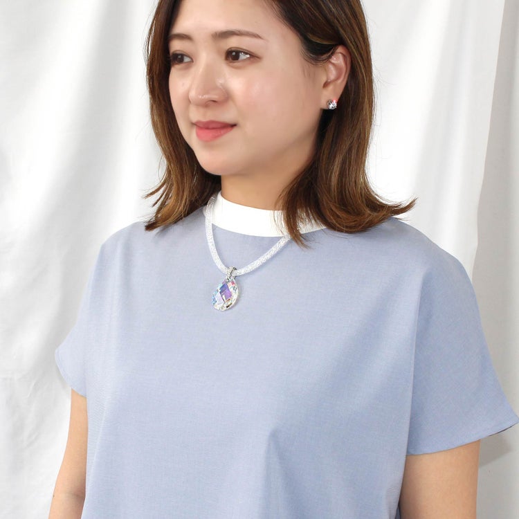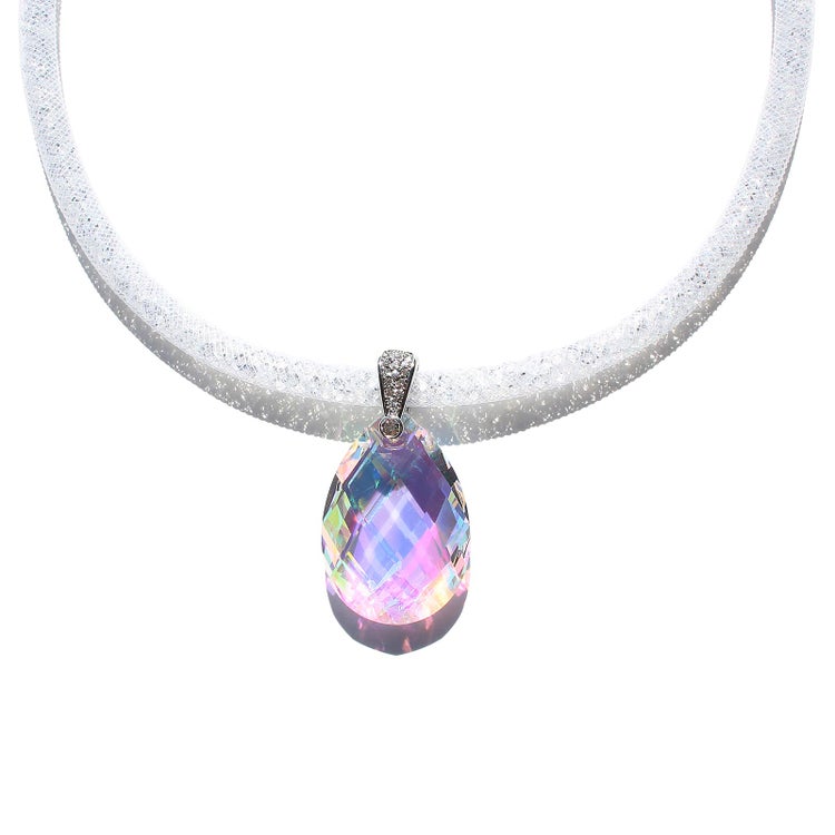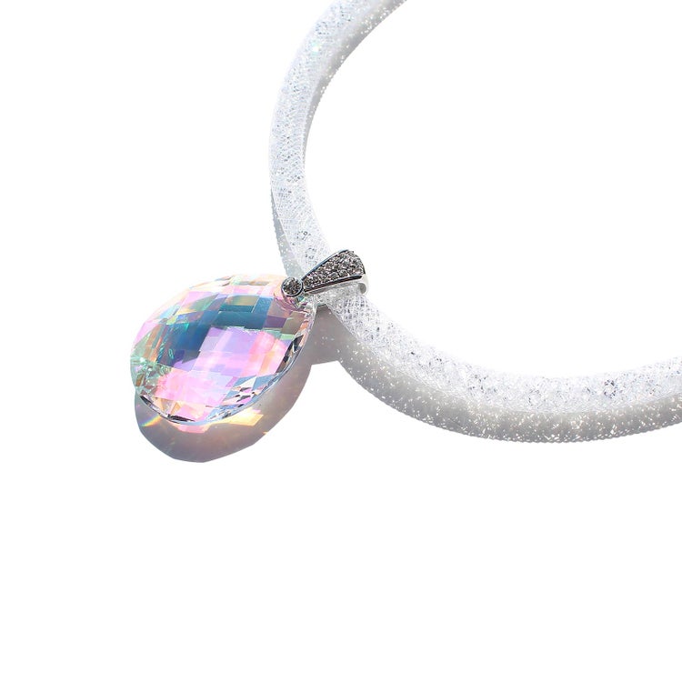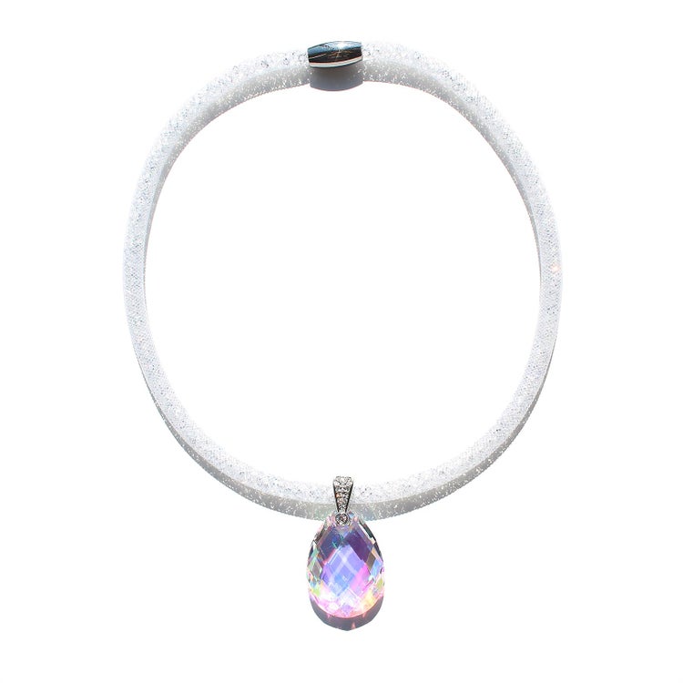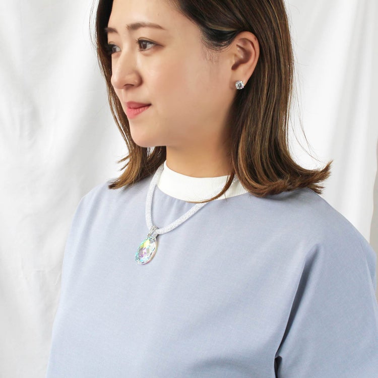 オーストリアの老舗、世界最高峰のクリスタルガラスブランドが製造した大粒のクリスタルガラスが煌めくネックレス。ナイロンメッシュの中に約1,000粒もの小さなクリスタルガラスが入ったコードを使用し、大粒、小粒、それぞれの輝きの美しさをお楽しみいただけます。