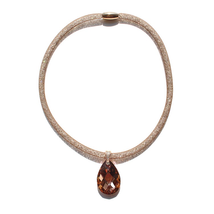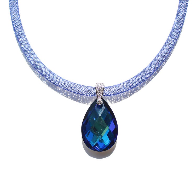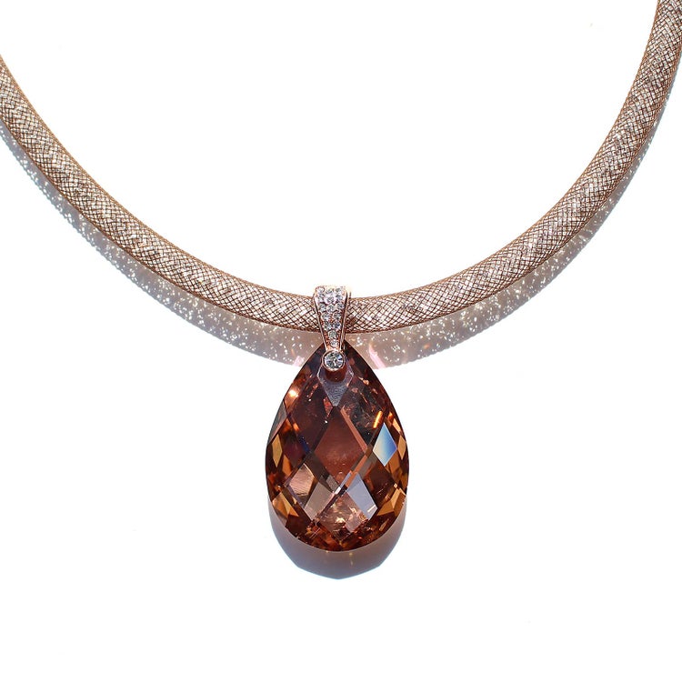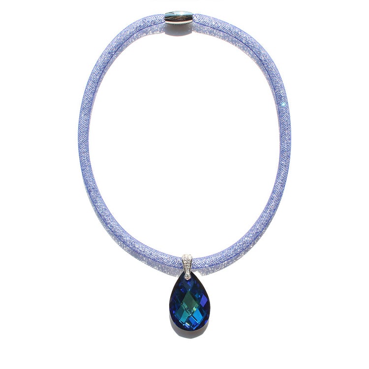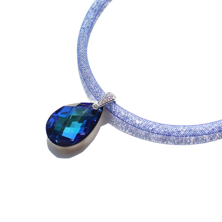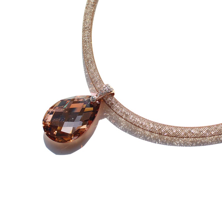 オーストリアの老舗、世界最高峰のクリスタルガラスブランドが製造した大粒のクリスタルガラスが煌めくネックレス。ナイロンメッシュの中に約1,000粒もの小さなクリスタルガラスが入ったコードを使用し、大粒、小粒、それぞれの輝きの美しさをお楽しみいただけます。