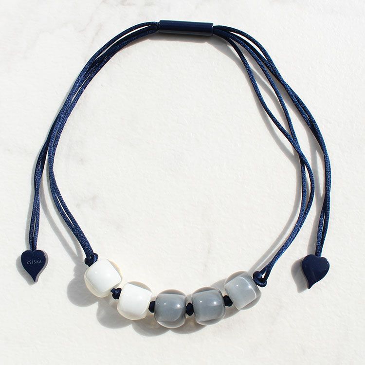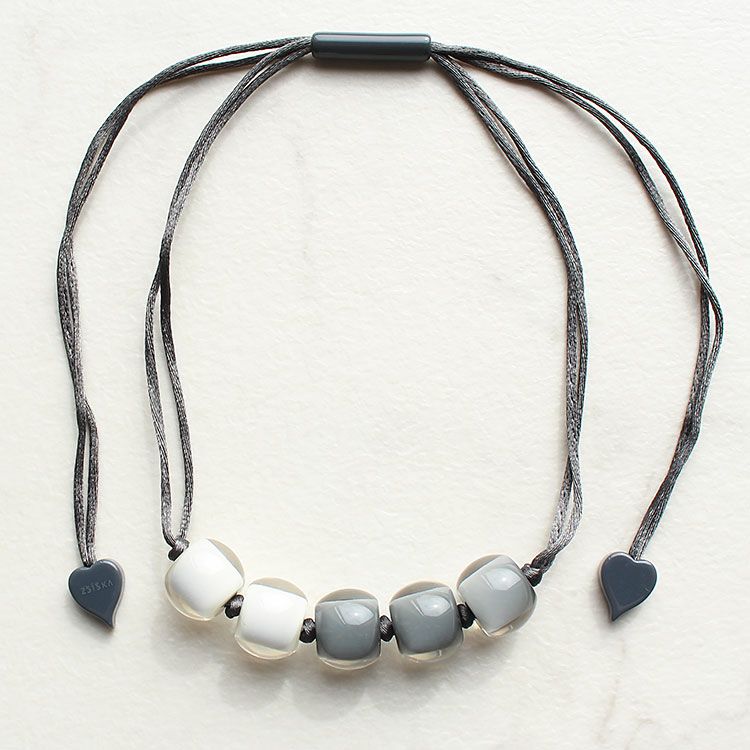 上質な樹脂、ポリエステルレジンの特性を活かし、ガラスのような質感を再現しつつも、軽くてつけやすいことで人気を博しています。肌に触れる部分に金属を使用していないため、アレルギーの方でも安心してお使いいただけます。