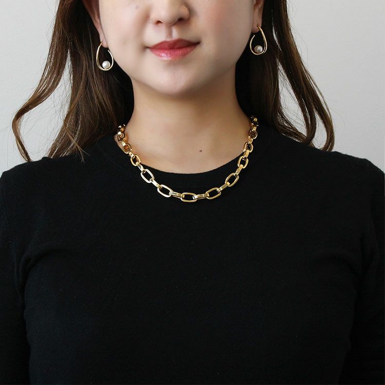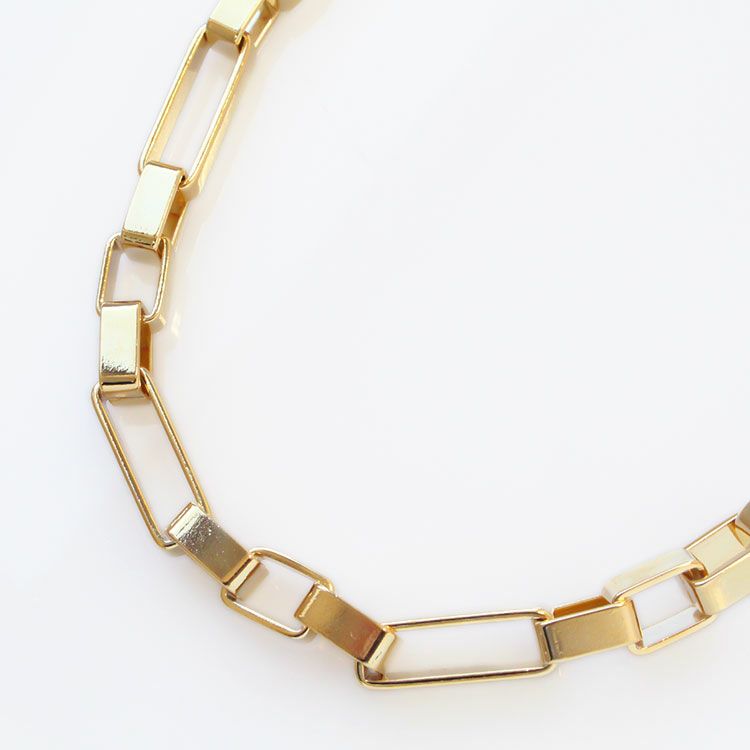 ゴールドカラーのメタルチェーンショートネックレス。ヨーロッパのチェーンメーカーがデザインしたシンプルながらも個性豊かなチェーンは単体でも重ね付けやセット使いでもおしゃれ。合わせやすいので使い勝手も抜群です。