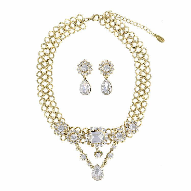 ビジュー×チェーンショートネックレス・イヤリングセット/1401064--2