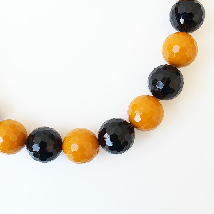 アクリルビーズを組み合わせた存在感ある大ぶりロングネックレス。重さはあるものの、着けた瞬間、重さが気にならなくなるほどしっくりくるオシャレ見えするデザインが魅力です。