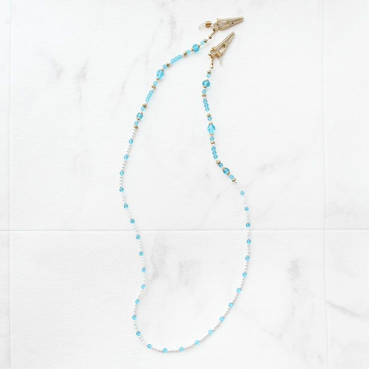 サングラス・リーディンググラスやマスクは、室内外や飲食など付け外しが多いもの。少しだけ外したい時にコードがあると便利です。また、顔まわりが華やぐアクセサリーとしても◎。