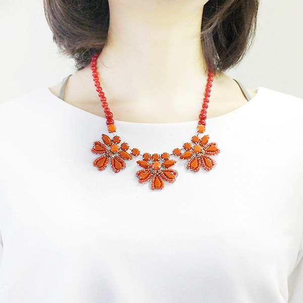 イタリア製フラワーモチーフアクリルビジューネックレス/1160215