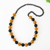 アクリルビーズを組み合わせた存在感ある大ぶりロングネックレス。重さはあるものの、着けた瞬間、重さが気にならなくなるほどしっくりくるオシャレ見えするデザインが魅力です。