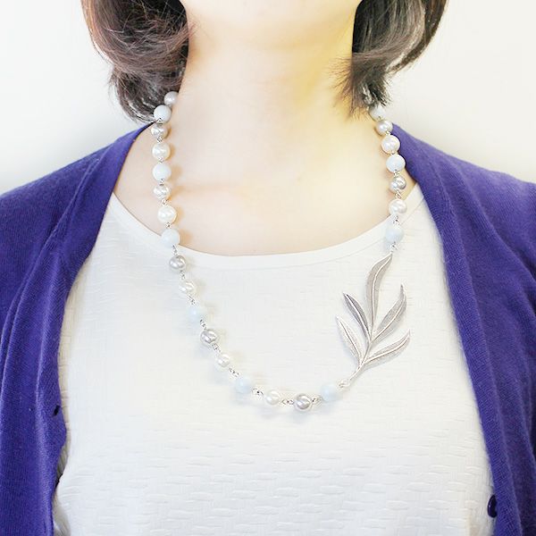 フランス製ボタニカルモチーフ付パール&ビーズネックレス/1160097