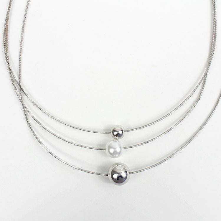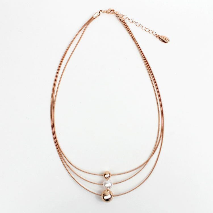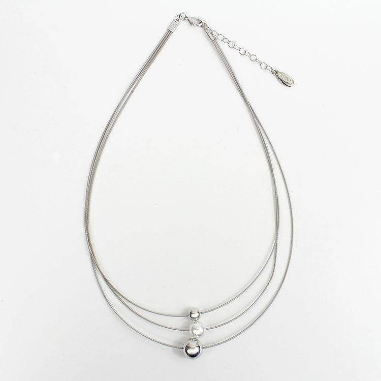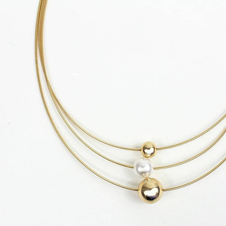 メタルボールとパールがアクセントになった3連ショートネックレス。首元に馴染みやすいデザインがデイリー使いしやすいデザインです。カジュアルからオケージョンシーンまで幅広くご利用いただけます。