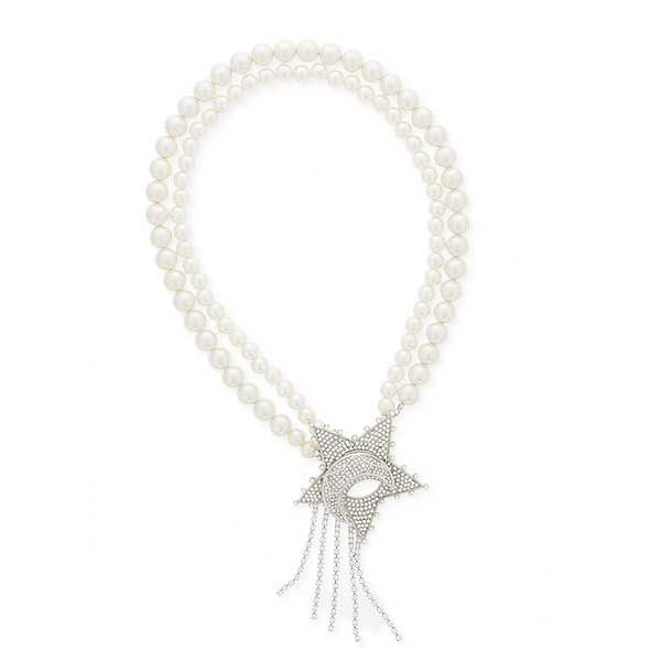 きらめく街並みに似合う華やかでロマンティックなデザインです。 トップを中央にして、Y字ネックレスのシルエットでお付けいただいたり、星のブローチとシンプルなパールネックレスに分けてお使いいただくこともでき、様々な楽しみ方のできるアイテムです。