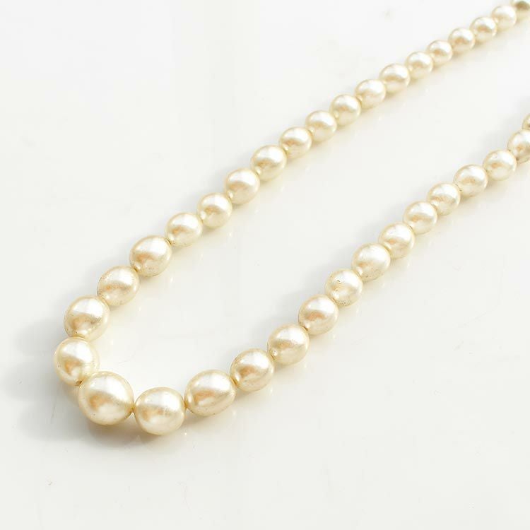 大小パールが連なるデザインパールショートネックレス。プリンセスサイズなので、日常使いから、フォーマルなお席まで1本持っていると大変便利にご利用いただけます。
