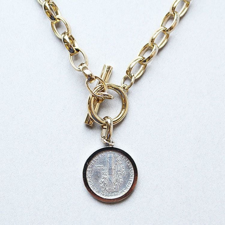 アメリカ10セントマーキュリーダイムコイン×淡水パール3wayネックレス【Oggi 掲載】