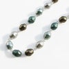 グリーンのグラデーションになったデザインショートネックレス。ガラスパールの艶が上品な大人の女性を演出します。