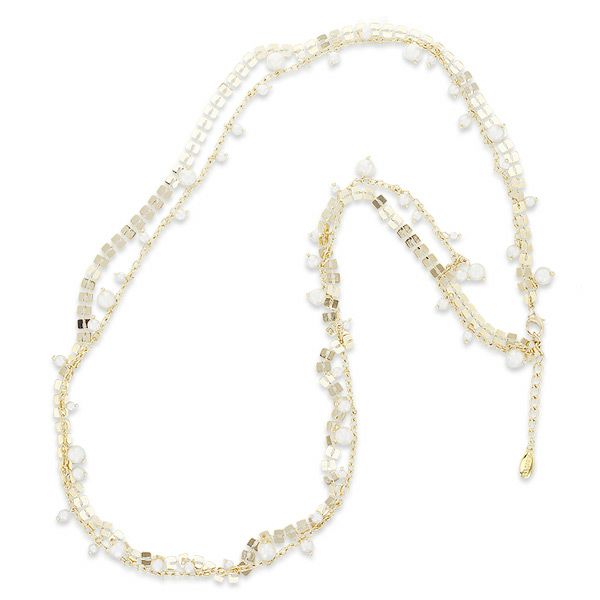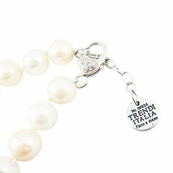 キュービックジルコニアハートキーモチーフ&パールロングネックレス/1180004