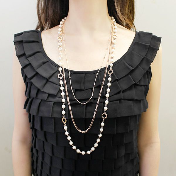 フランス製ボタニカルモチーフ付パール&ビーズネックレス/1160097