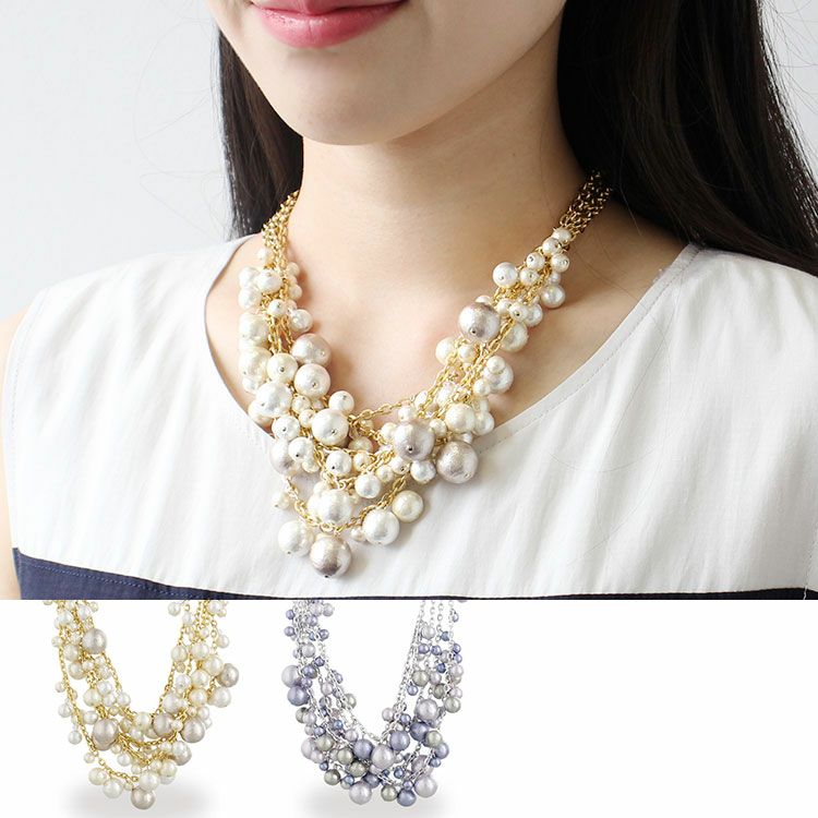 日本製コットンパールネックレス(2本セット)/1210077